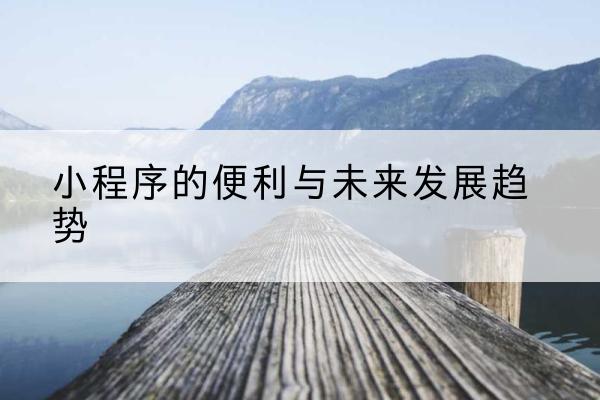 小程序作为一款轻量级应用,凭借其易用性、省内存等优势,逐渐成为人们生活中不可或缺的一部分。随着技术创新和行业融合的推进,小程序将为用户带来更多便捷、丰富的服务。同时,政府的支持也将为小程序的繁荣发展提供有力保障。