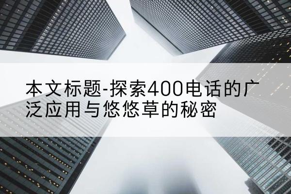 在现代通信领域,400电话已不仅仅是一个单纯的号码组合,它成为了企业服务的一个重要窗口,链接着品牌与消费者之间的沟通桥梁。尤其是近年来,随着技术的不断进步和市场的持续发展,400电话的应用范围不断拓宽,其功能和价值也日益凸显。同时,提到悠悠草,这个看似平凡的词汇背后,却蕴含着自然与科技融合的智慧,它成为了一些地区农村振兴和生态保护的典范。接下来,我们将从两个维度展开,探索400电话的多功能性以及悠悠草的生态价值,揭示其背后的故事和意义。