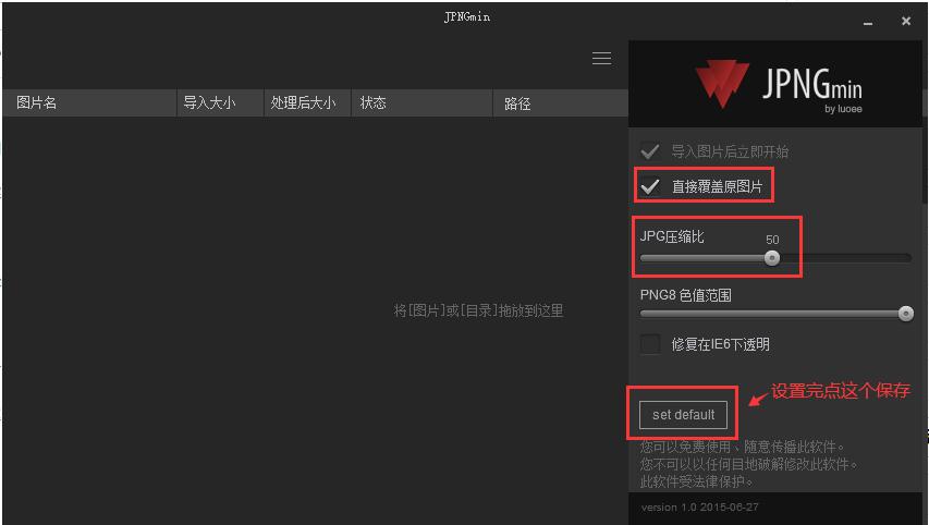 直接将所有图片,拖进这个软件里,就会自动开始压缩。