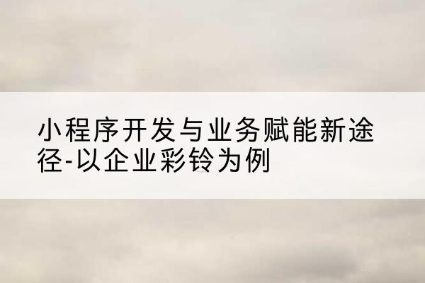 随着数字时代的来临,小程序作为一种新兴的轻量级应用模式,正受到越来越多企业和开发者的青睐。小程序以其无需安装、触手可及、用户体验流畅等优点,成为了移动互联网时代的新宠儿。而在这其中,企业彩铃的出现,巧妙地将小程序与企业文化相结合,为企业带来了全新的业务赋能。